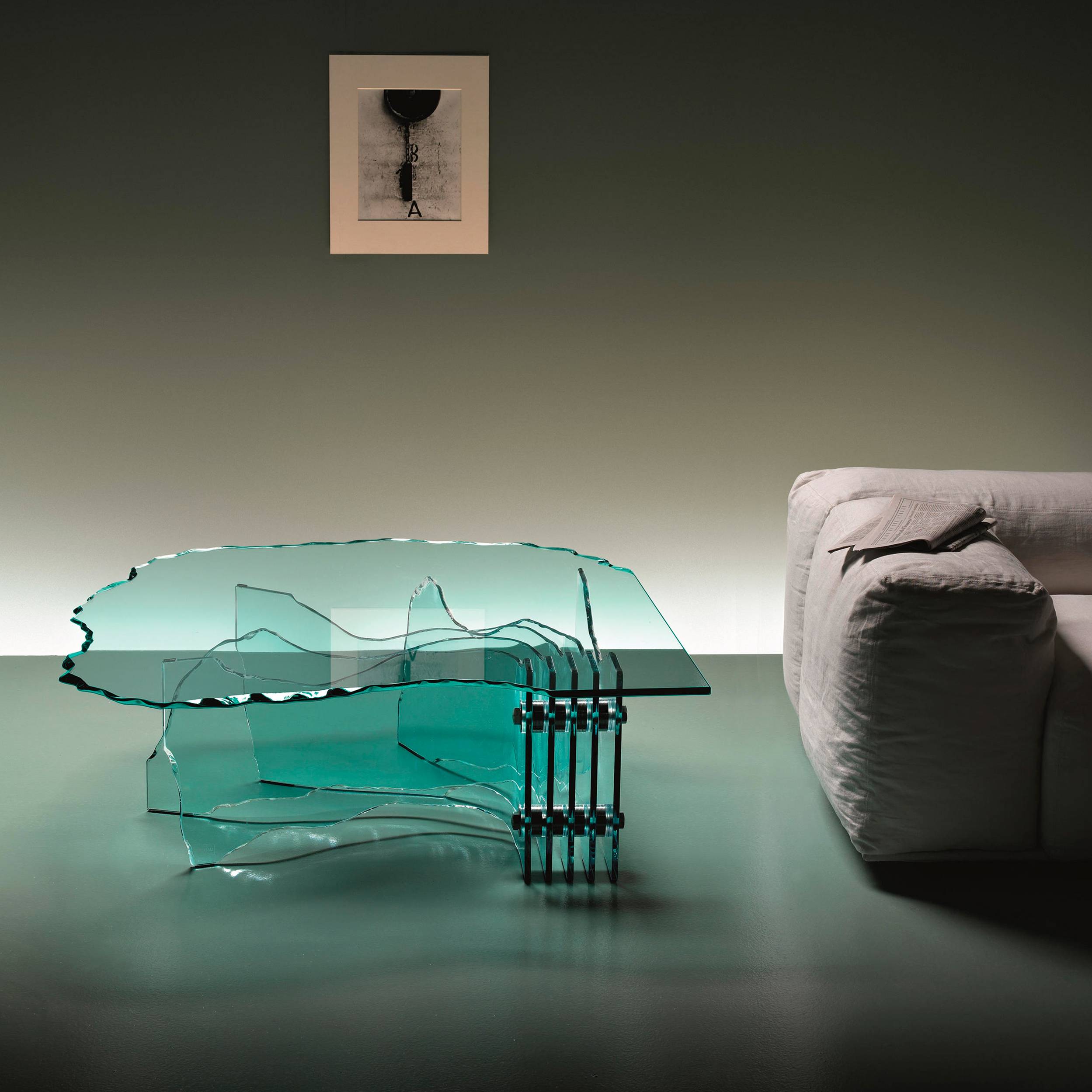 “Shell” stol za kavu sačinjen je od zakrivljenog staklenog postolja debljine 12 mm i pločom od ručno oblikovanog stakla debljine 15 mm. Dijelovi su mu od nehrđajućeg čelika što ga čini popularnim izborom kod opremanja kafića, ali i kod opremanja restorana opuštenije atmosfere.