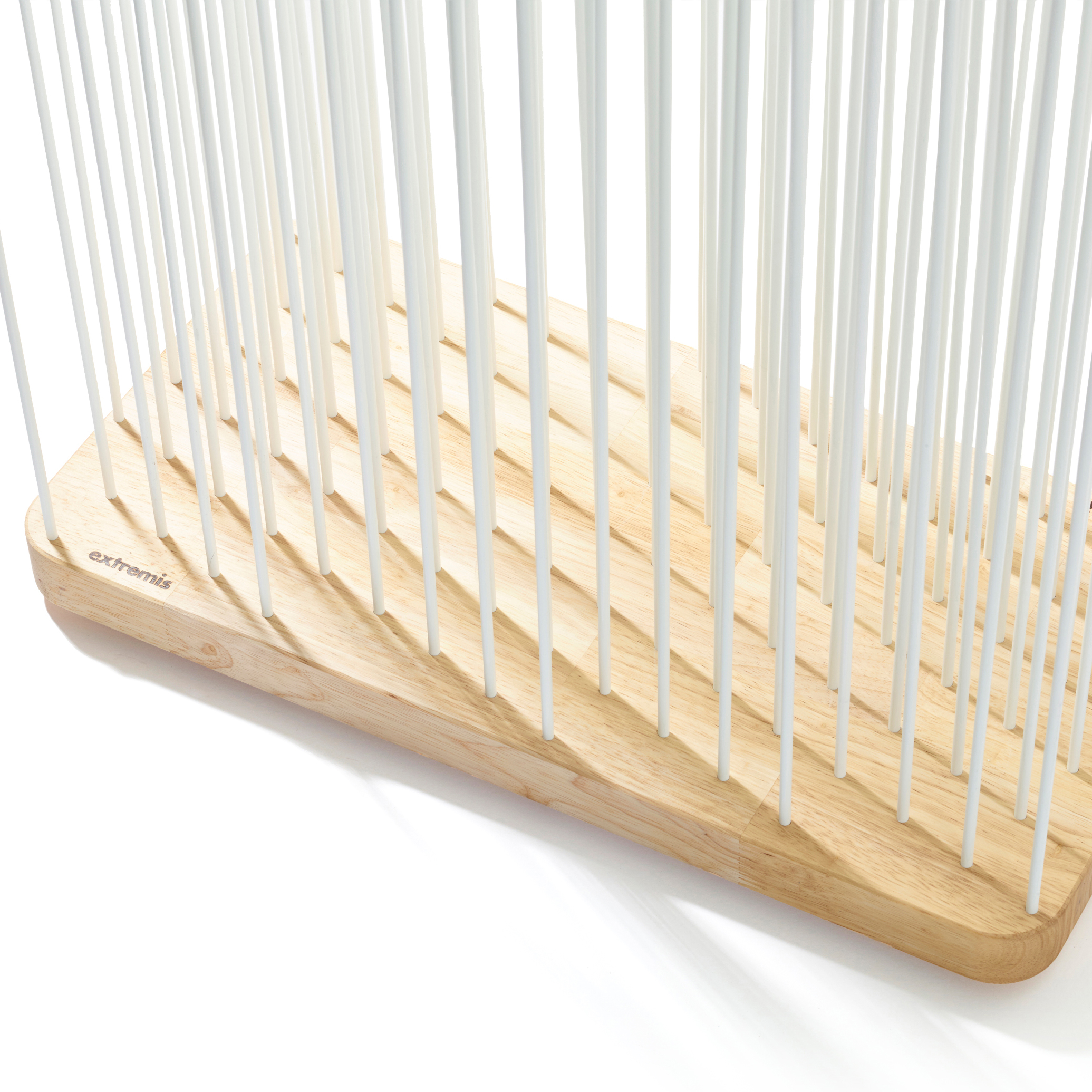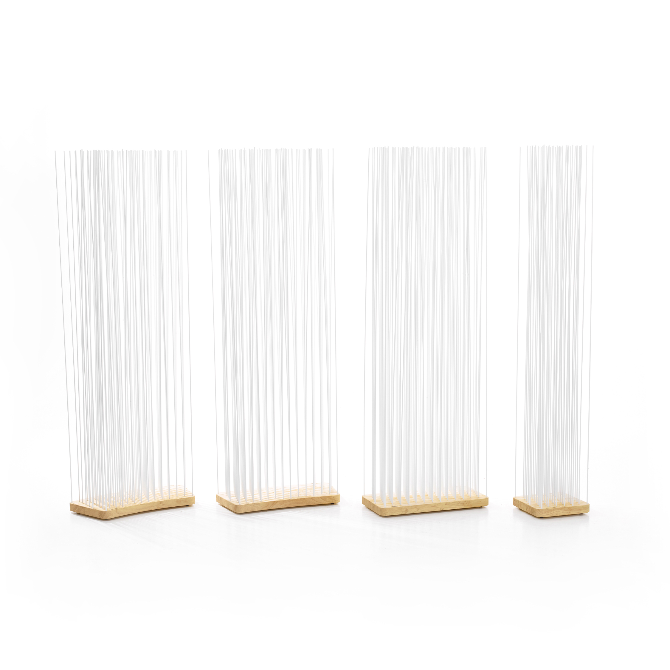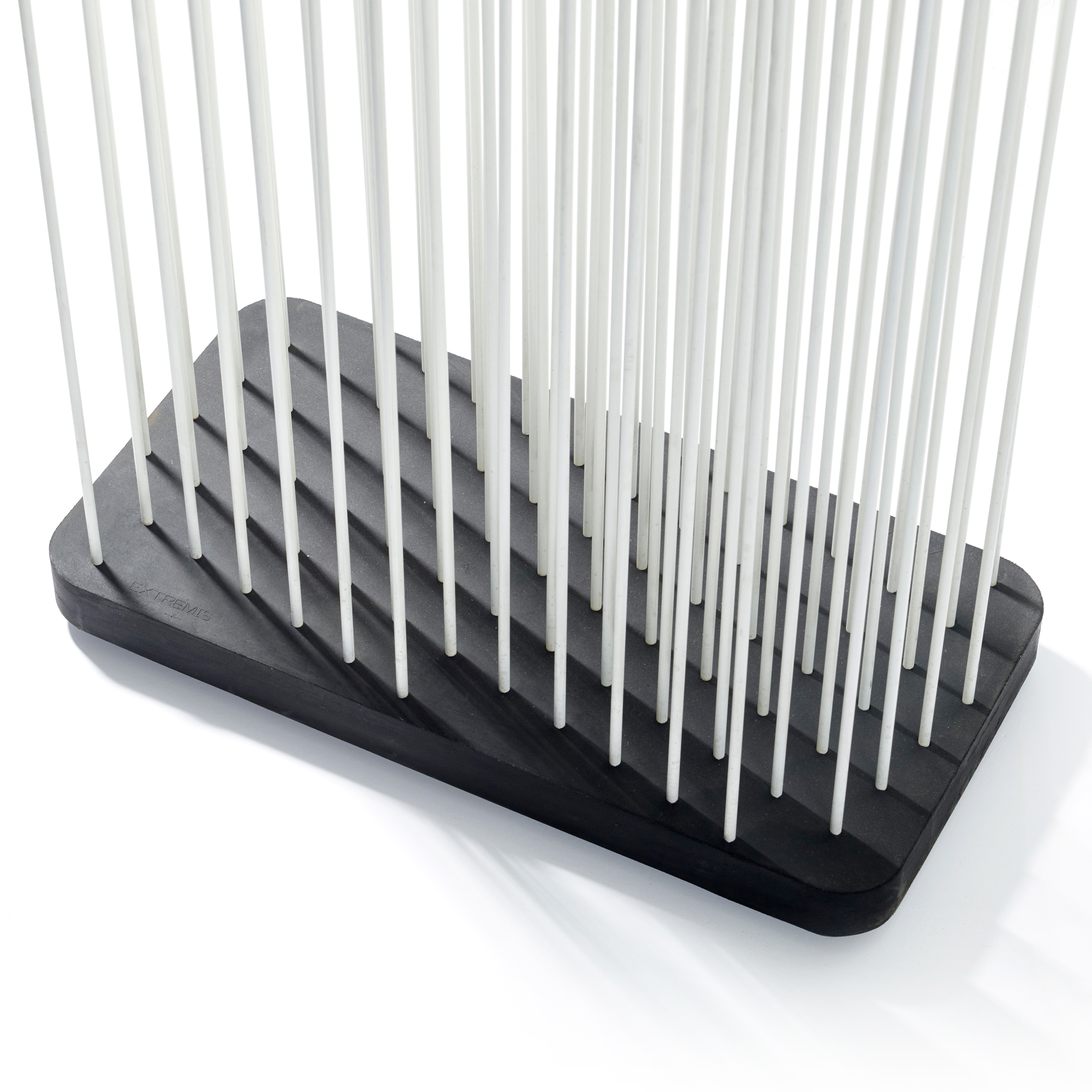 Ova pregrada idealna je za stvaranje osjećaja privatnosti u vrtu ili na balkonu bez gubitka osjećaja slobode tipičnog za otvorene prostore. Koristite „Sticks“ u zatvorenom prostoru kako biste dizajn interijera u potpunosti prilagodili vlastitom ukusu. Možete stvarati različite stupnjeve transparentnosti, kombinacije boja ili razlike u duljini. Isporučuje se s opcijskim nožicama za osjetljive podove. Guma može uzrokovati mrlje na osjetljivim površinama. Preporučujemo korištenje stopala ako se nalaze u zatvorenom prostoru. Koristite drvenu podlogu na tepihu.