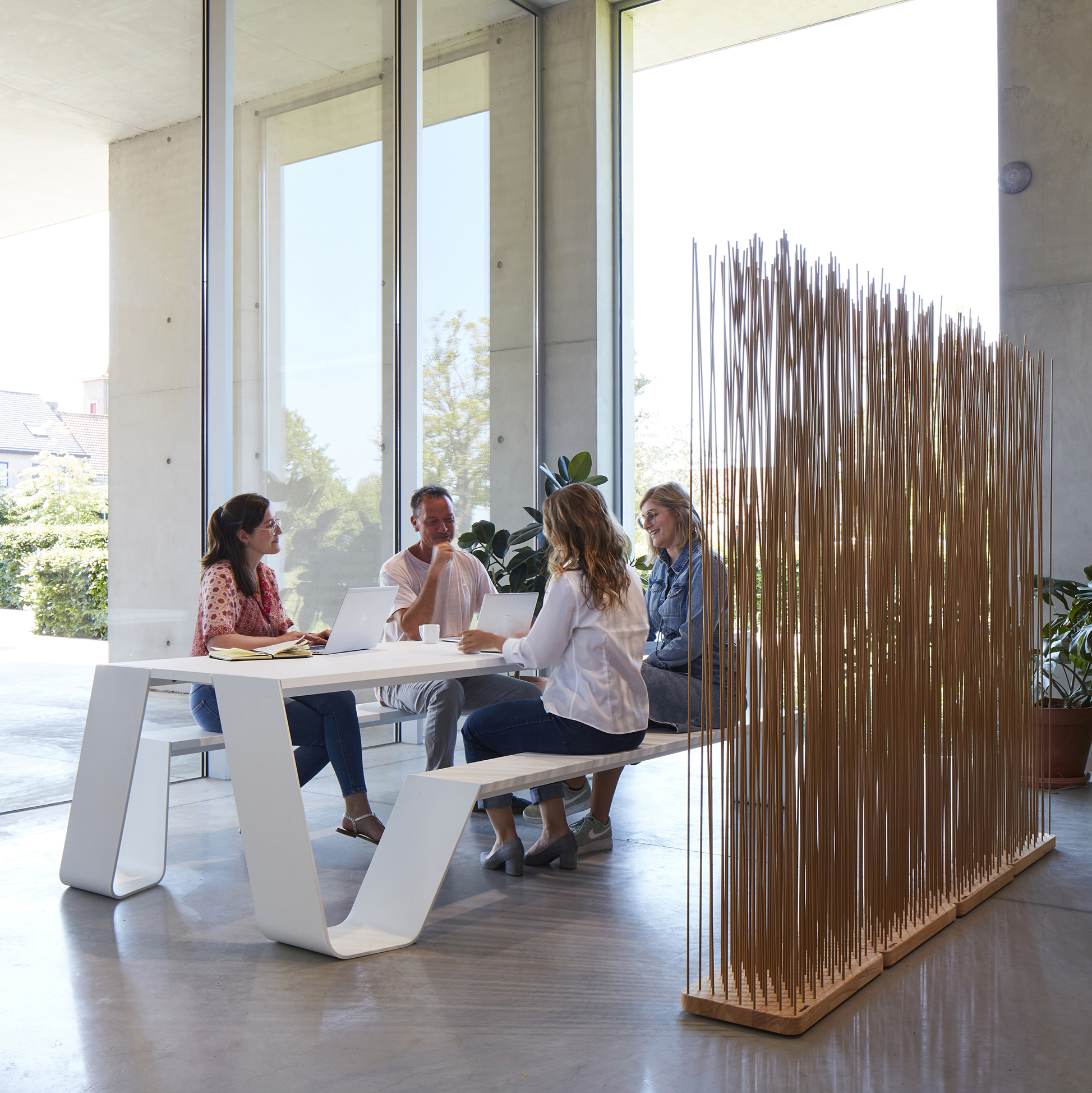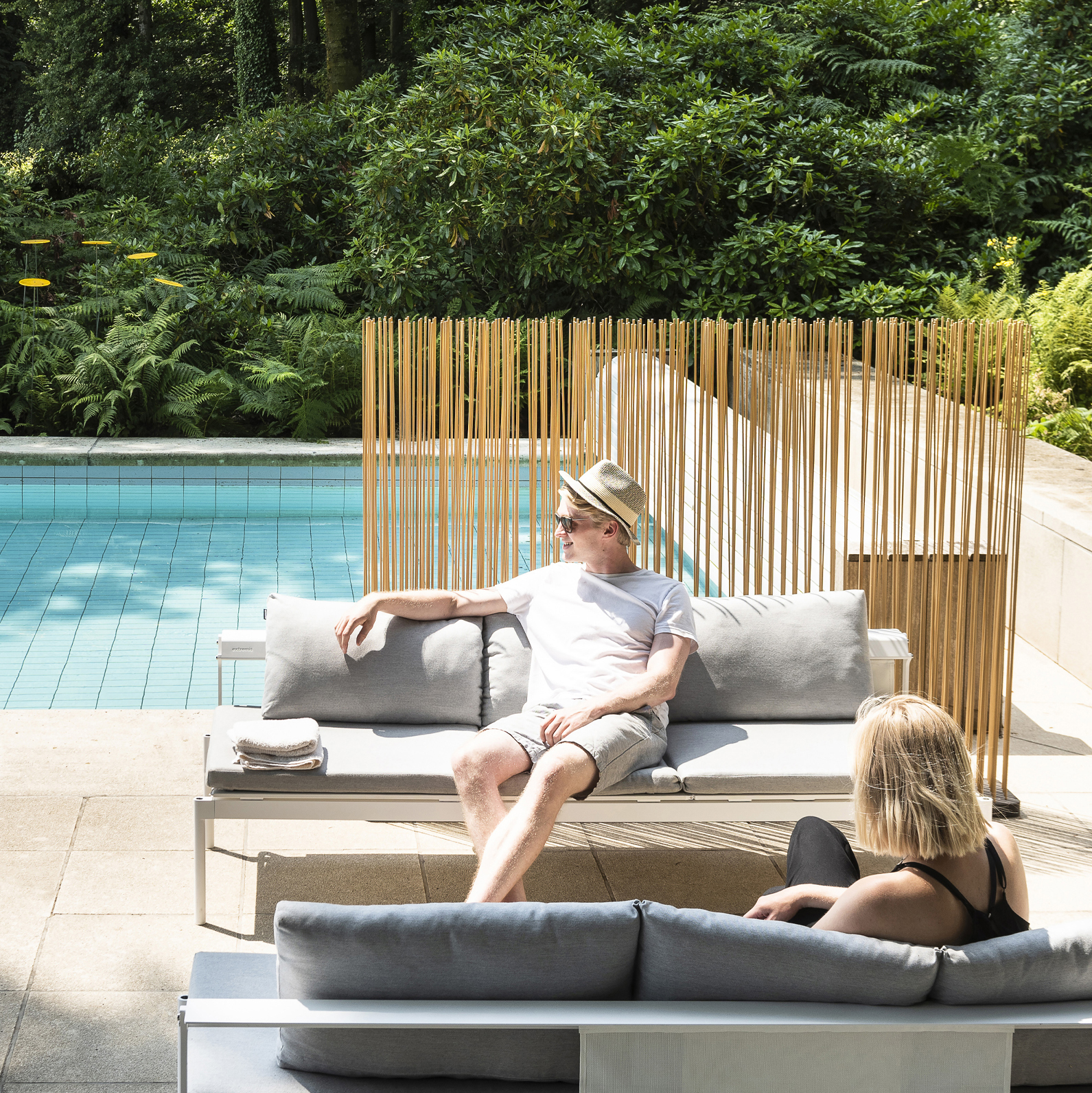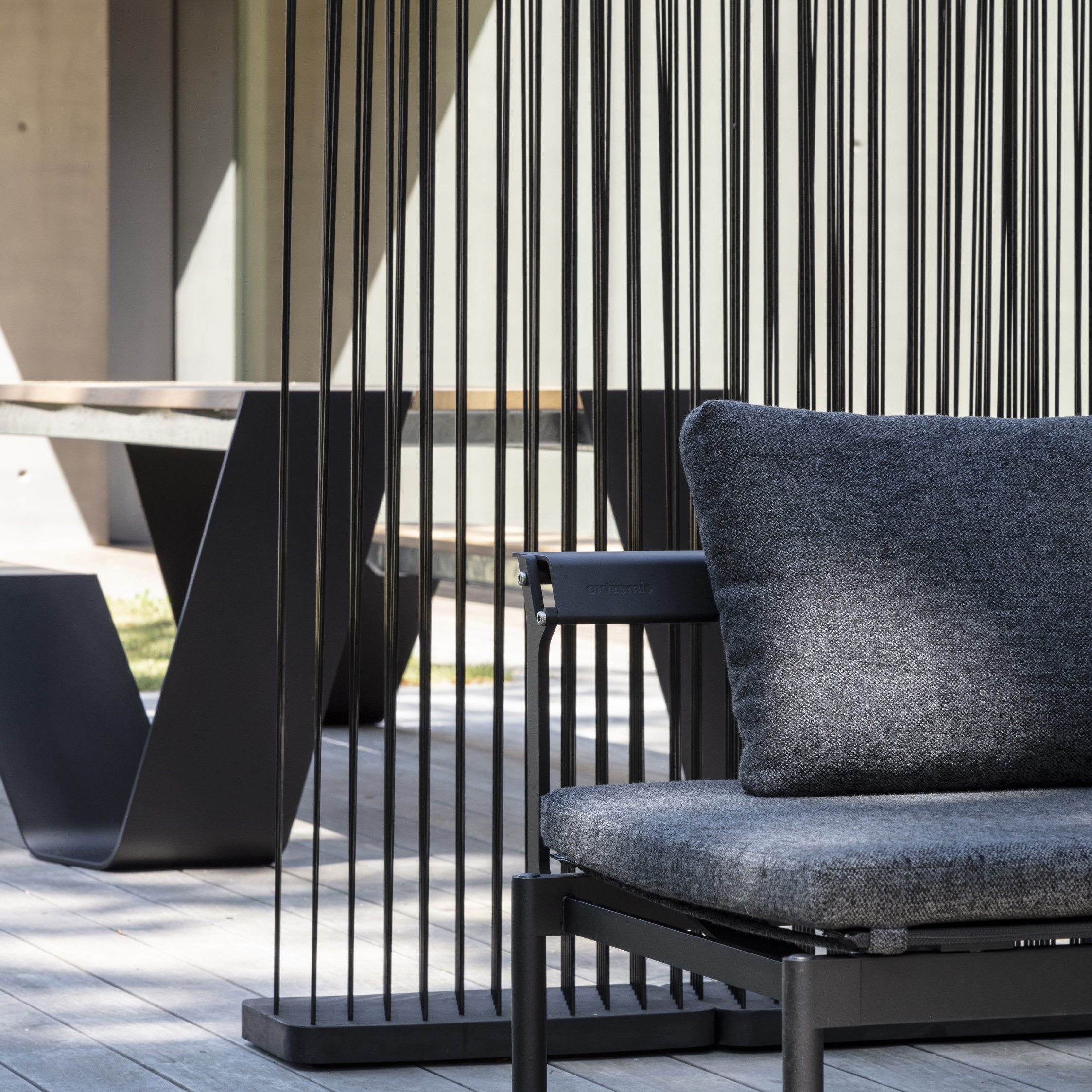 Ova pregrada idealna je za stvaranje osjećaja privatnosti u vrtu ili na balkonu bez gubitka osjećaja slobode tipičnog za otvorene prostore. Koristite „Sticks“ u zatvorenom prostoru kako biste dizajn interijera u potpunosti prilagodili vlastitom ukusu. Možete stvarati različite stupnjeve transparentnosti, kombinacije boja ili razlike u duljini. Isporučuje se s opcijskim nožicama za osjetljive podove. Guma može uzrokovati mrlje na osjetljivim površinama. Preporučujemo korištenje stopala ako se nalaze u zatvorenom prostoru. Koristite drvenu podlogu na tepihu.