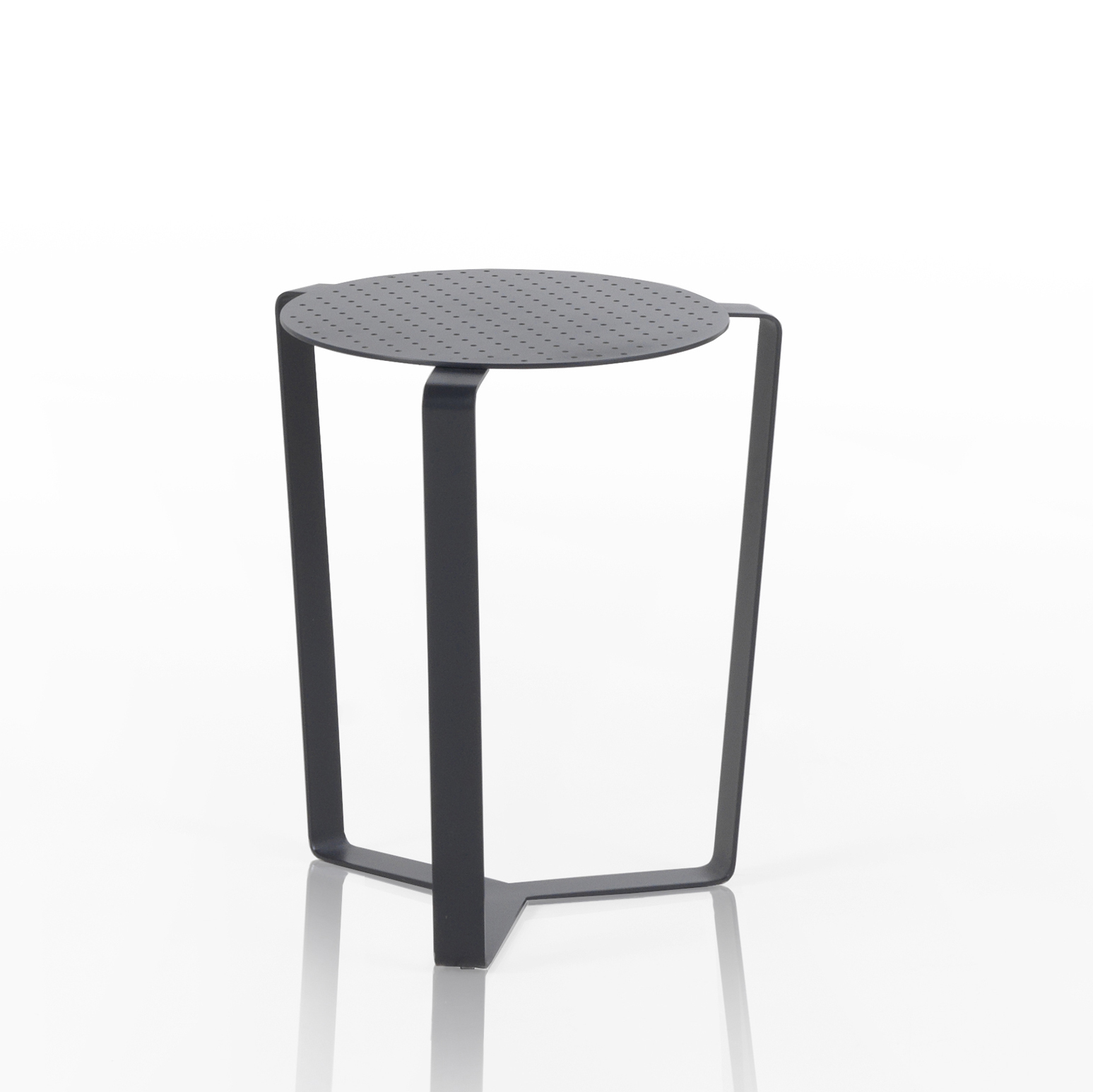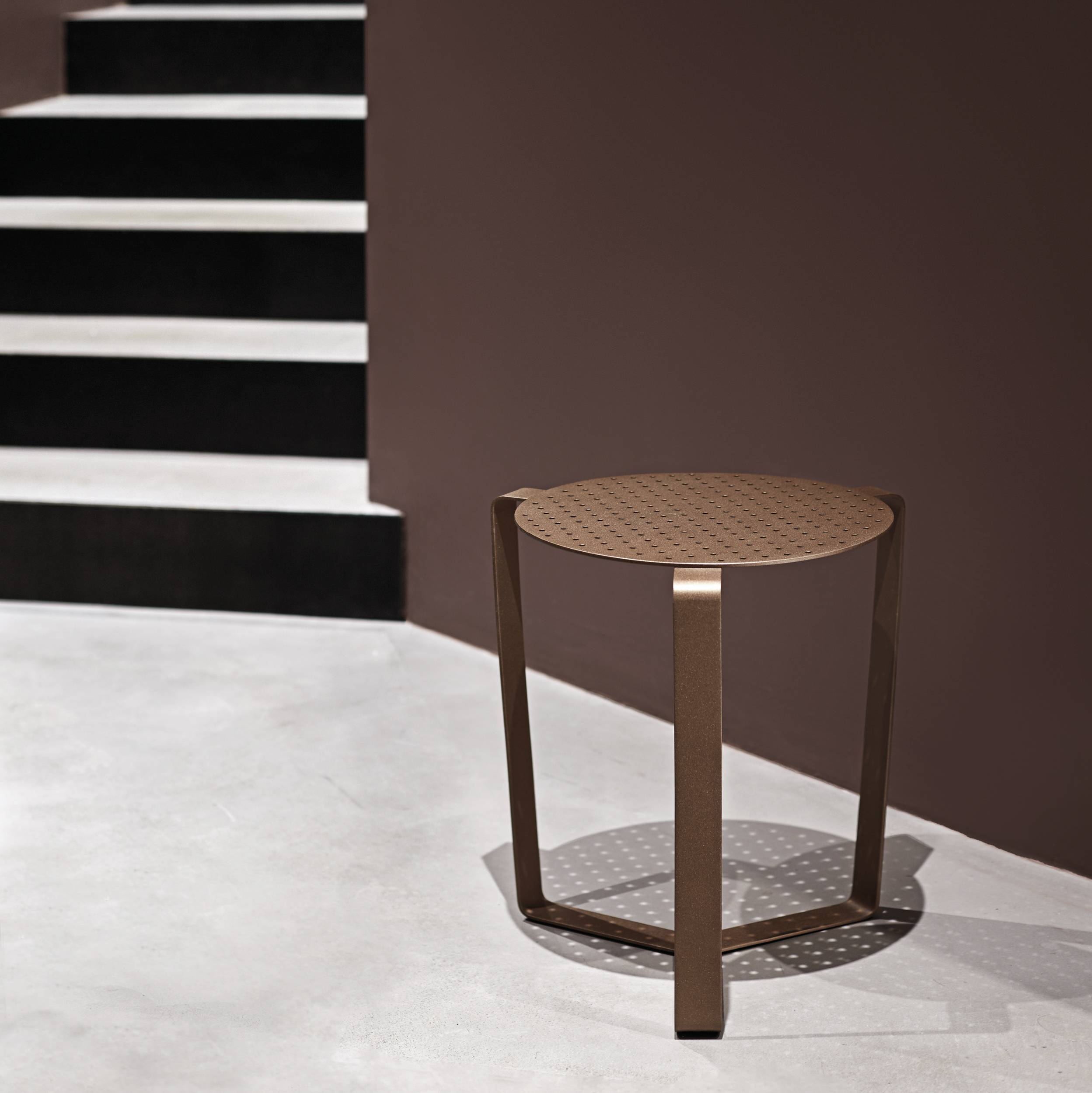 Konstrukcija od lakirane čelične ploče s presjekom 4 mm/0,16”. Mali stolić idealan za sjedalice i nisko sjedenje ako volite osebujan dizajn interijera.